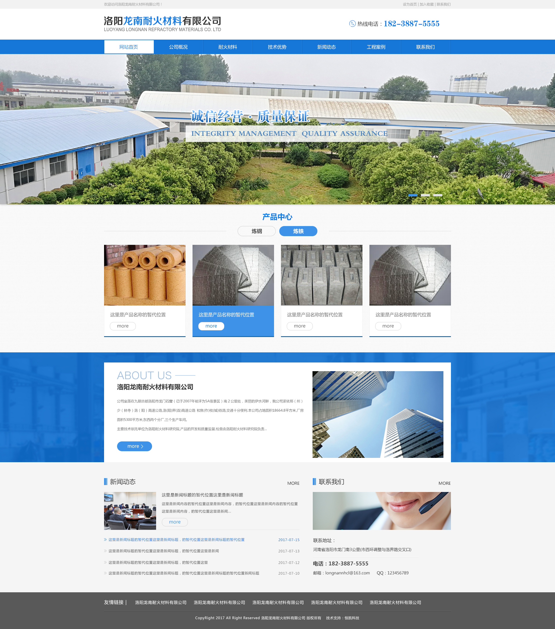 洛陽龍南耐火材料有限公司 主要技術依托單位為洛陽耐火材料研究院,產品的開發和質量監督,檢查由洛陽耐火材料研究院負責。