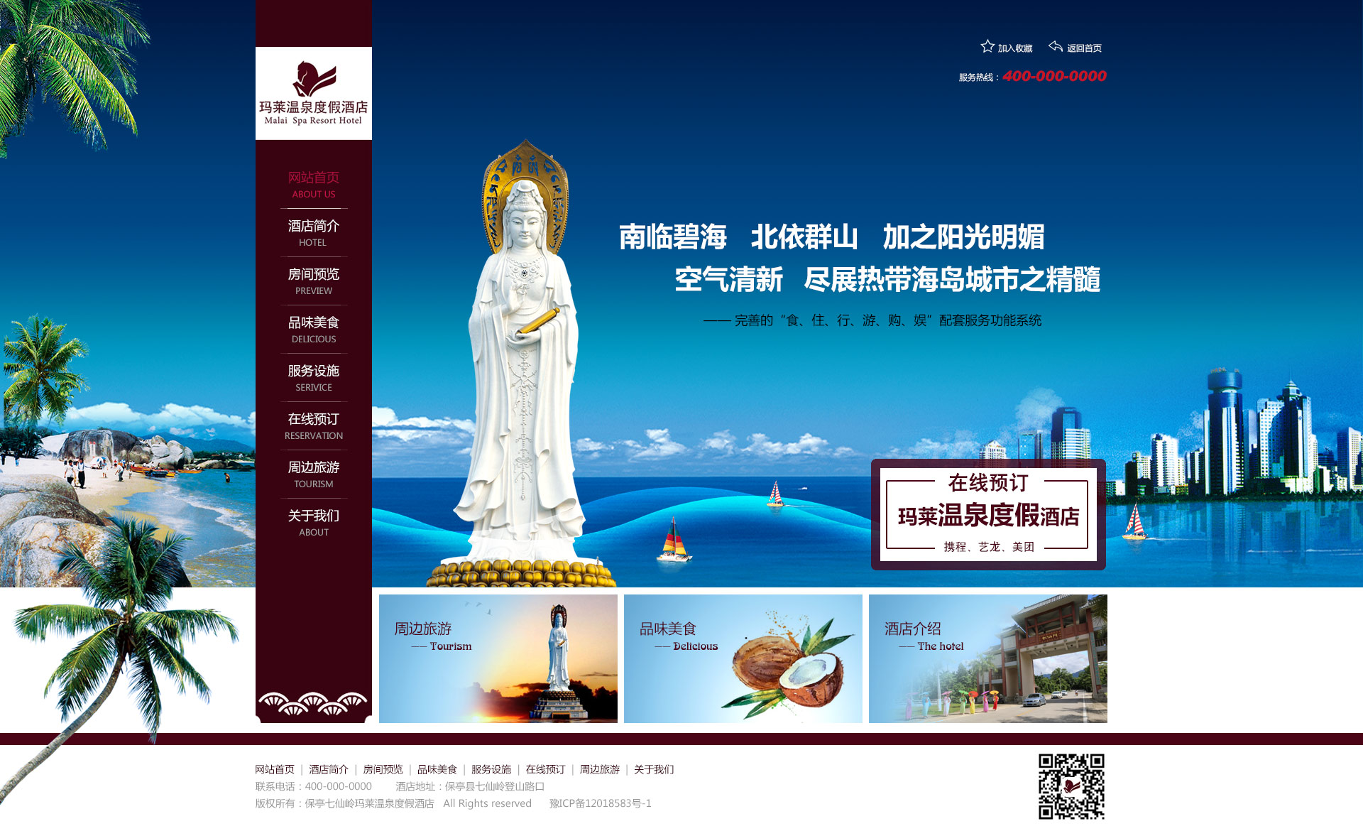 瑪萊酒店——南鄰碧海,北依群山,加之陽光明媚,空氣清新,盡展熱帶海島城市之精髓。擁有完善的“食、住、行、游、購、娛”配套服務(wù)功能系統(tǒng)。
